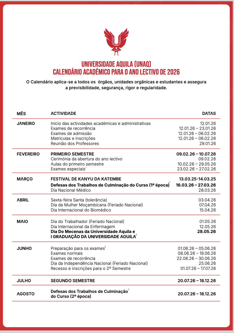 Calendário Académico 2026