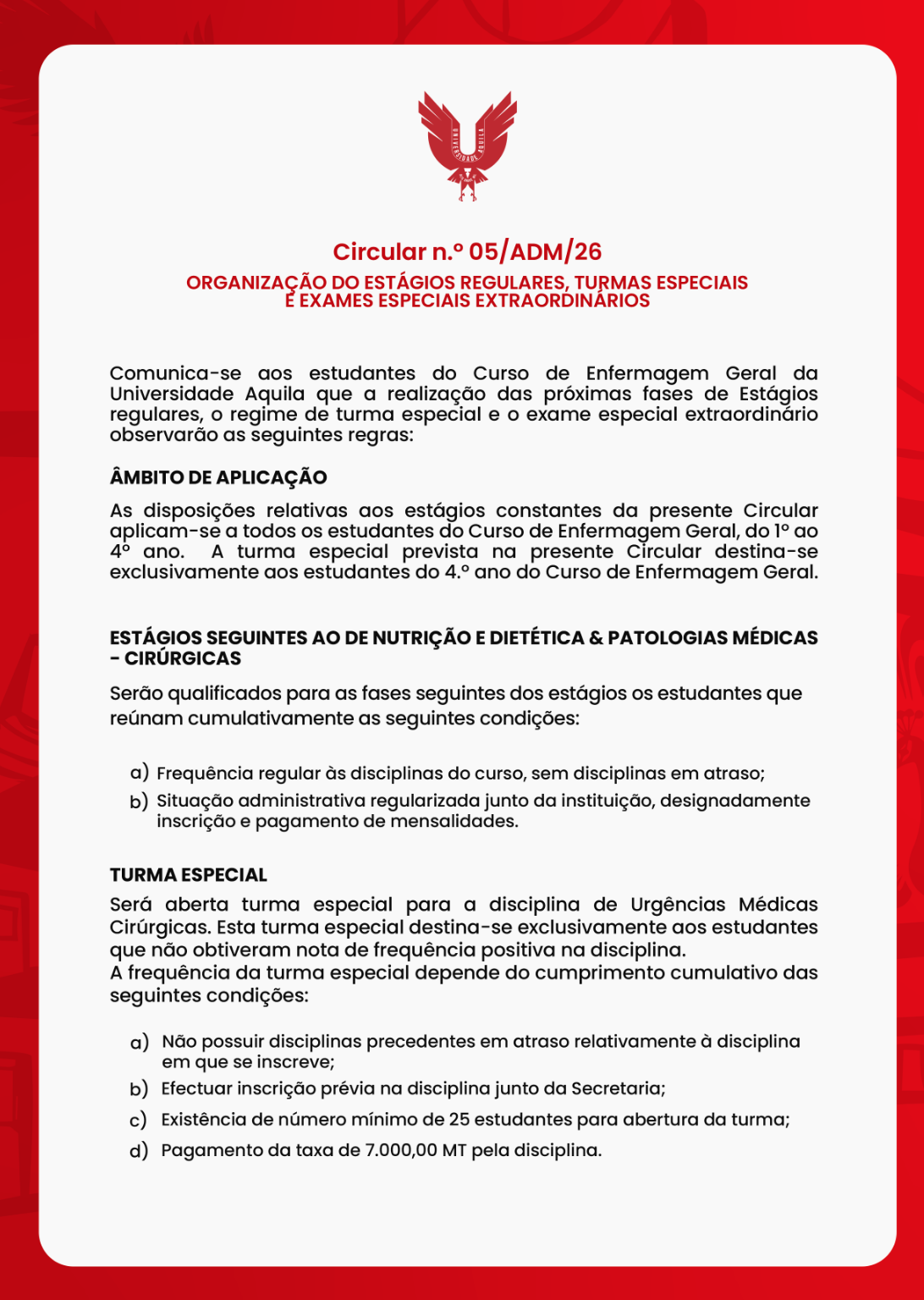 Circular 05 - Organização do Estágios Regulares
